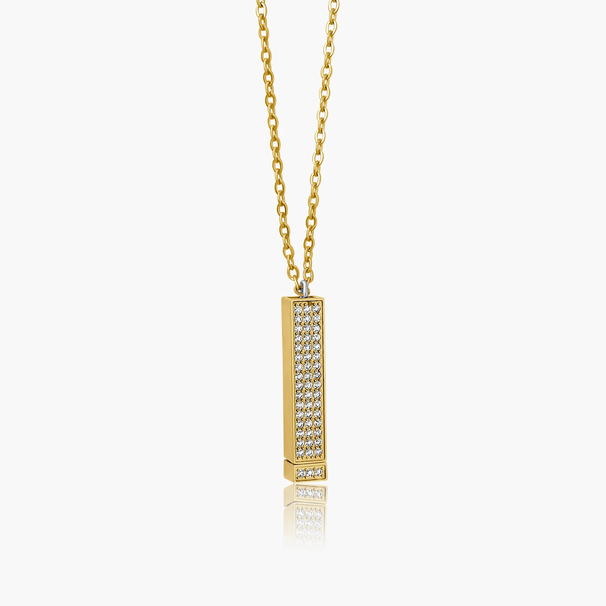 Un gioiello splendido con un messaggio nascosto. La collana Élora è realizzata in acciaio inossidabile, placcata in oro 18K e impreziosita da scintillanti pietre di zircone. Nel bastoncino estraibile puoi lasciare un'incisione personale – da un nome o una data a un testo significativo. Elegante all'esterno, piena di emozione all'interno.