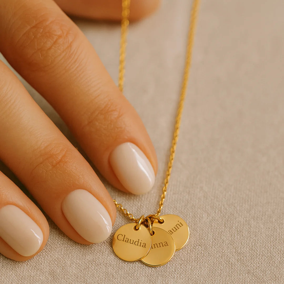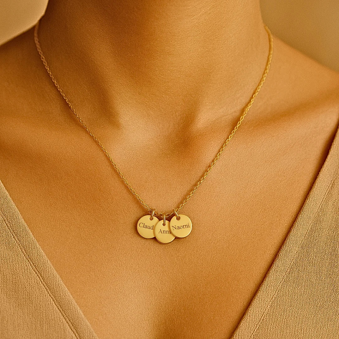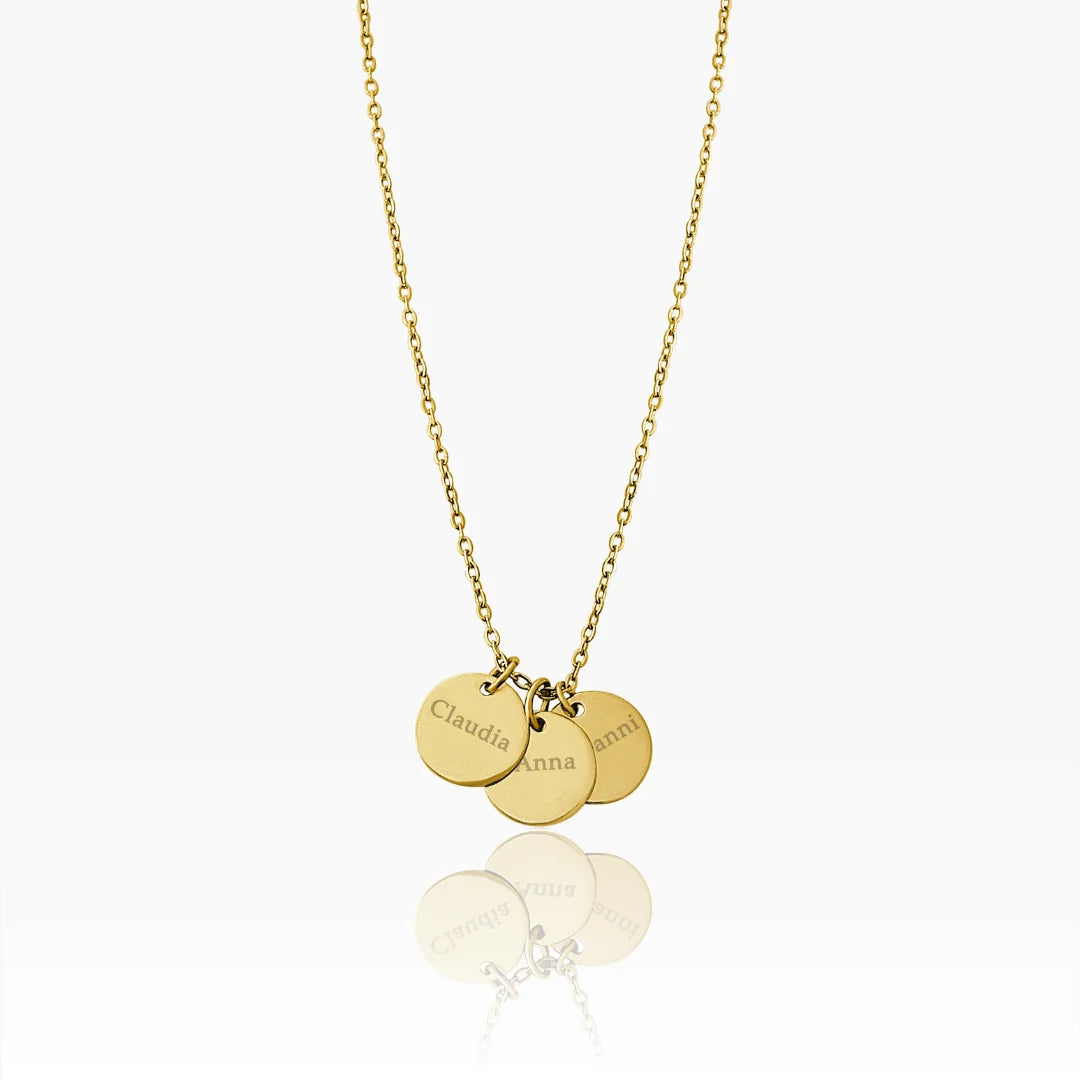 The My Circle Necklace carries up to 5 coins, each engraved with a name that makes your heart full.